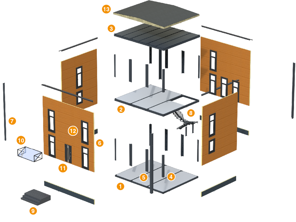 Дома EFFECT собираются по типу крупногабаритного конструктора. Все элементы изготавливаются на заводе, а затем доставляются до места сборки. Каркас устанавливается на болтовом соединении, а все элементы теплого контура уже готовы к монтажу.